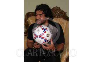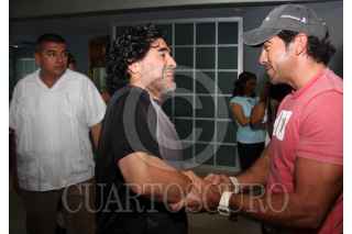 CANCÚN, QUINTANA ROO, 20SEPTIEMBRE2008.- El astro del futbol argentino; Diego Armando "Pelusa" Maradona en la visita que realizo en exclusiva al diario Quequi, donde convivio y dio autografos al personal de redacción. FOTO: MARCO POLO GUZMÁN HERNÁNDEZ/CUARTOSCURO.COM