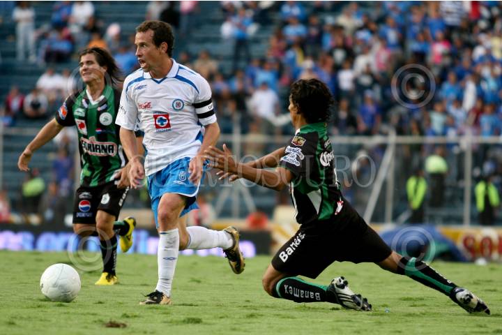 MÉXICO, D.F., 20SEPTIEMBRE2008.- Con gol de ultimo miuto de Gerardo Torrado, jugador del Cruz Azul, se empató un juego que los Santos de la La Laguna creían ganado, el juego se mantuvo en su mayor parte empatado a ceros en la recta final los jugadores de ambos lados apretaron y eso permitió un mejor espectaculo. El partido correspondia a la jornada nueve del Torneo de Apertura y se realizó en el Estadio Azul. FOTO: MOISÉS PABLO/CUARTOSCURO.COM