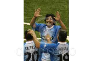 CANCÚN, QUINTANA ROO, 20SEPTIEMBRE2008.- En el poliforum de esta ciudad se realizo el Showbol, entre los ex seleccionados de Argentina y México, en donde al inicio del segundo tiempo los argentino con Diego Armando "Pelusa" Maradona ganan seis goles a tres. FOTO: MARCO POLO GUZMÁN HERNÁNDEZ/CUARTOSCURO.COM