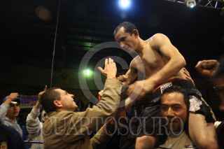 ZACATECAS,ZACATECAS, 21SEPTIEMBRE2008.- Ayer por la noche se realizó la pelea por el campeonato mundial hispanoamericano de boxeo, entre Felipe "El Principe" Carlos originario Jerez Zacatecas y Juan Carlos Rodriguez "El Buby" de Argentina, la función tuvo lugar en el gimnacio Marcelino González a las 11:30 de la noche. Fue una pelea cerrada y difícil en 12 rounds, "El Buby" logró derribar en dos ocaciones a Felipe , no obstante "El Principe" Carlos fué declarado vencedor por decisión dividida. FOTO: COSME RADA / CUARTOSCURO.COM