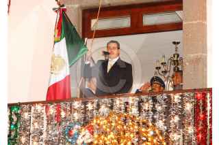 TLAQUEPAQUE, JALISCO 21SEPTIEMBRE2008.- Como cada año, el siguiente sábado del 15 de septiembre, se celebra el grito de independencia en el estado. El alcalde tlaquepalquense Hernán Cortés Berumen, dió el viva México a las 22:30 horas de este sábado 20 de septiembre, seguido por los tradicionales juegos pirotécnicos. FOTO: JUAN MANUEL CABRERA/CUARTOSCURO.COM