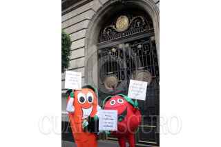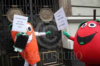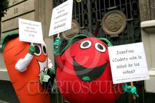 MÉXICO, D.F., 22SEPTIEMBRE2008.- La zanahoria y la sana manzana, se manifestaron en las afueras de la Secretaria de Educación Pública, en demanda de que en las coperativas escolares se retiren los alimentos chatarras. FOTO: VICTORIA VALTIERRA/CUARTOSCURO.COM