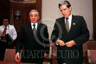 Guido Belssaso y Julio Frenk Mora, de la secretaria de salud firmaron un convenio con las industrias tabacalera y farmaceutica, con el fin de evitar la venta de cigarros a menores. FOTO: Juan Pablo Zamora/CUARTOSCURO