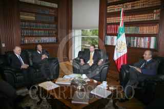 MEXICO, D.F., 22SEPTIEMBRE2008.- El presidente de la República, Felipe Calderon Hinojosa, se reunio a medio día en la residencia oficial de los Pinos, con Achim Steiner, director del PNUMA, Rajendra Pachauri, presidente del Panel Intergubernamental de Cambio Climatico y el doctor Mario Molina, premio nobel de Química 1995. FOTO: ALFREDO GUERRERO/CUARTOSCURO.COM