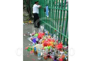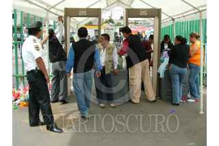 NEZAHUALCOYOTL, ESTADO DE MÉXICO, 23SEPTIEMBRE2008.- En la entrega de apoyos del programas -Bécate y Fomento al Auto empleo-, en el estacionamiento del estadio Neza 86 por parte del gobierno federal y del estado de México; se colocaron fuertes medidas de seguridad en la entrada e impidieron que pasaran con armas punzo cortantes y paquetes o bebidas de dudosa procedencia. FOTO: MARIO NULO/CUARTOSCURO.COM