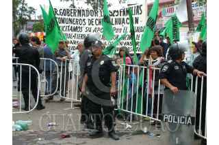 NEZAHUALCOYOTL, ESTADO DE MÉXICO, 23SEPTIEMBRE2008.- Elementos de la Agencia de Seguridad Estatal (ASE), impidieron el paso al estadio Neza 86 a comuneros del município de Chimalhuacán, quienes exigían al gobernador del Estado de México, Enrique Peña Nieto, su intervención para que antorchistas de ese município desalojaran sus tierras que dolosamente invadieron. FOTO: MARIO NULO/CUARTOSCURO.COM