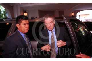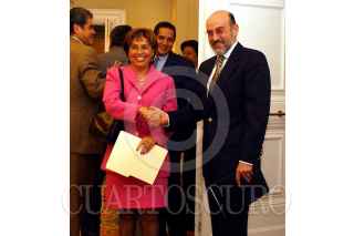 Rosario Robles dirigente del PRD y Luis Felipe Bravo Mena del PAN, se saludan en el foro The Economist Conference, que se realiza en un conocido hotel de la capital. FOTO: Alberto Valdez/CUARTOSCURO.COM