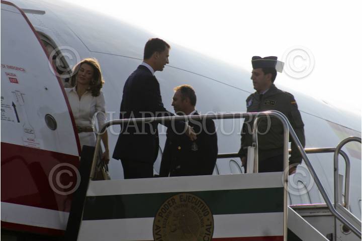 MÉXICO, D.F., 28SEPTIEMBRE2008.- El principe de España Felipe de Borbón y la princesa Letizia Ortiz a su llegada a México en el hangar presidencial. FOTO: RICARDO CASTELAN/CUARTOSCURO.COM