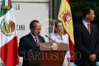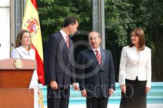 MÉXICO D.F., 29SEPTIEMBRE2008.-El presidente Felipe Calderón, acompañado de su esposa Margarita Zavala, encabezo la ceremonia de bienvenida a los príncipes de Asturias, Felipe de Borbon y Grecia, quien es acompañado de su esposa Letizia Ortiz, esto en la explanada del monumento a “Don Francisco I. Madero” de la Residencia Oficial de los Pinos. FOTO: GUILLERMO PEREA/CUARTOSCURO.COM