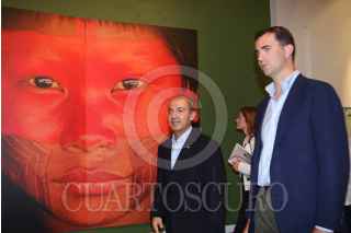MORELIA, MICHOACÁN, 29SEPTIEMBRE2008.- El presidente Felipe Calderón es acompañado de los Príncipes de Asturias, Felipe de Borbón y Letizia Ortiz, durante el recorrido por la exposición de pintura Novohispana, en el Centro Cultural Clavijero. FOTO: FEDERICO ALTAMIRANO/CUARTOSCURO.COM