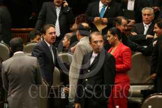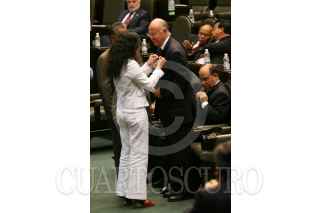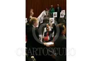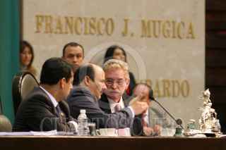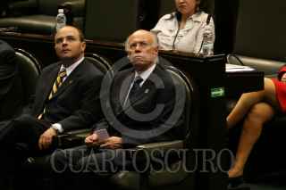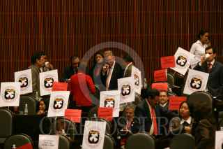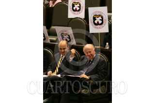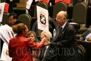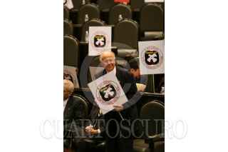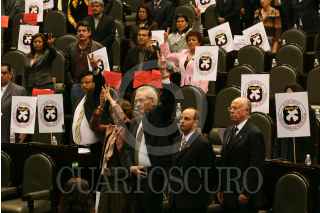 MÉXICO, D.F., 02OCTUBRE2008.- Se realizó la sesión ordinaria en la Cámara de Diputados, donde se recordó el 40 Aniversario de la Matanza Estudiantil del 2 de Octubre de 1968 en la Plaza de las Tres Culturas, a la sesión asistió, José Narro, Rector de la UNAM y donde diputados del PRD, mostraron banderines con la leyenda “A 40 Años, 2 de Octubre No se olvida”. En la imágen; los diputados, así como los invitados guardan un minuto de silencio. FOTO: GUILLERMO PEREA/CUARTOSCURO.COM