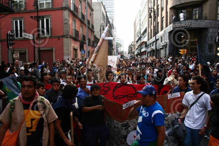 MÉXICO D.F., 02OCTUBR2008.- Jóvenes realizaron destrozos y pintas durante la marcha en conmemoración del XL Aniversario de la Matanza del 2 de Octubre de 1968. FOTO: ANA LUCIA ALTAMIRANO/CUARTOSCURO.COM