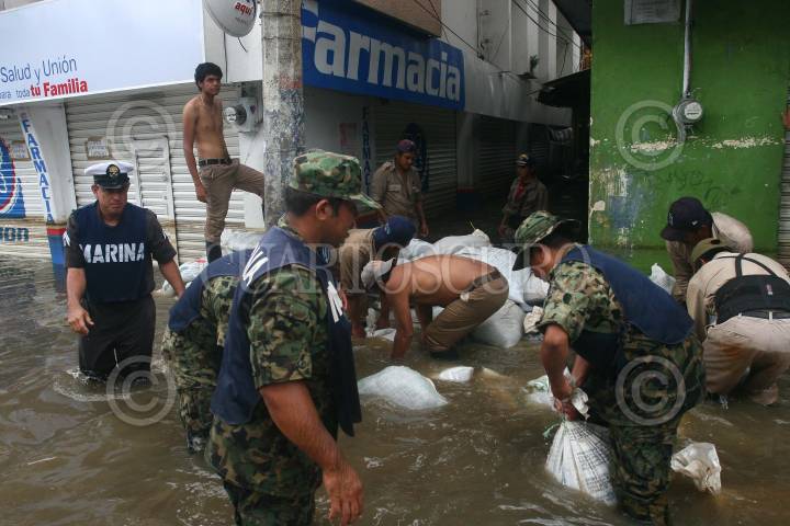 MINATITLAN, VERACRUZ., 03OCTUBRE2008.- Los negocios y las calles del centro de Minatitlan fueron los mas afectados debido al desbordamiento de rios y arrollos aledaños, algunas personas se niegan a salir de sus casas y negocios por temor a que les roben sus pertenencias. Apesar que ya ha bajado el nivel del agua personal de proteccion civil aseguran que sera hasta el proximo año cuando el centro de Minatitlan vuelva a la normalidad. FOTO: SAÚL LÓPEZ/CUARTOSCURO.COM