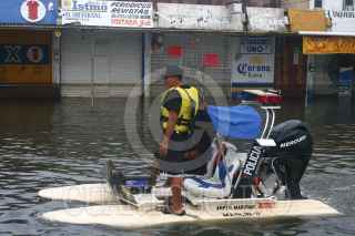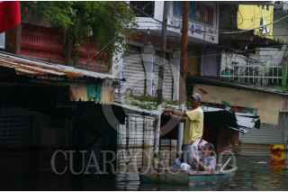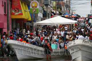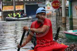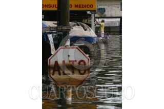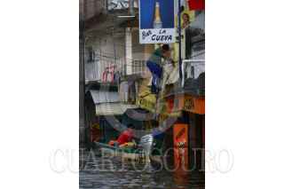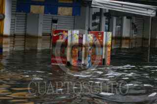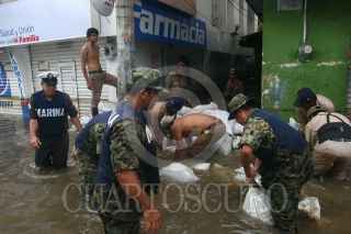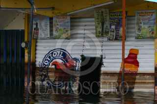 MINATITLAN, VERACRUZ., 03OCTUBRE2008.- Los negocios y las calles del centro de Minatitlan fueron los mas afectados debido al desbordamiento de rios y arrollos aledaños, algunas personas se niegan a salir de sus casas y negocios por temor a que les roben sus pertenencias. Apesar que ya ha bajado el nivel del agua personal de proteccion civil aseguran que sera hasta el proximo año cuando el centro de Minatitlan vuelva a la normalidad. FOTO: SAÚL LÓPEZ/CUARTOSCURO.COM