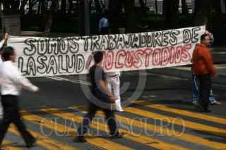 MÉXICO, D.F., 03OCTUBRE2008.- Un grupo de médicos pertenecientes al hospitar de Xoco protesta frente a las oficinas de la PGR ubicada en reforma, donde exijieron la libertad y apoyo para Carlos Martínez Neri quién es acusado de complicidad por la fuga de Ángel Cisneros Marín, alias, 'El Flaco' escapa del hospital Xoco, el pasado 28 de Septiembre. FOTO: SÁSHENKA GUTIÉRREZ/ CUARTOSCURO.COM FOTO