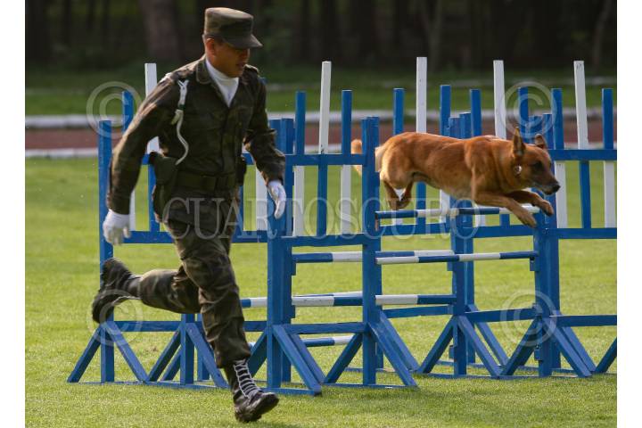 MÉXICO, D.F., 04OCTUBRE2008.- A raíz del siniestro que se vivió en nuestro país en el año de 1985 la Secretaría de la Defensa Nacional, consideró crear unidades provistas de perros adiestrados en diversas especialidades y en 1998 se creó oficialmente el Centro de Producción Canina del Ejército y Fuerza Aérea Mexicanos, que trabaja con tes razas principalmente: Pastor Alemán, Pastor Belga y Rottweiler este centro se ubica en el Campo Militar no. 37-B San Miguel de los Jagüeyes en el Estado de México. Los canes se adiestran en cuatro especialidades de adiestramiento: Búsqueda localización de explosivos, búsqueda y detención de enervantes, búsqueda y rescate, guardia y protección y rastreo, el tiempo de entrenamiento es de 6 meses, después de los cuales, se le pueden considerar como un perro operativo. Hoy por la mañana en el Campo Militar no. 1 se realizó una demostración para observar una práctica de entrenamiento de los estos binomios perro-adiestrador. FOTO: MOISÉS PABLO/CUARTOSCURO.COM
