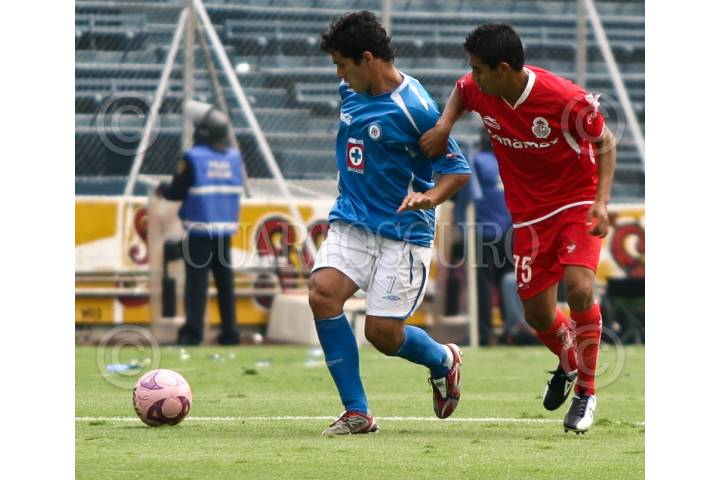 MÉXICO, D.F., 04OCTUBRE2008.- Pablo Daniel Zeballos de los cemeteros del Cruz Azul corre con el balón urante el partido enfrentado esta tarde con los diablos del Toluca en partido de la jornada 11 quedando empatado a 1 gol. FOTO: RODOLFO ANGULO/CUARTOSCURO.COM