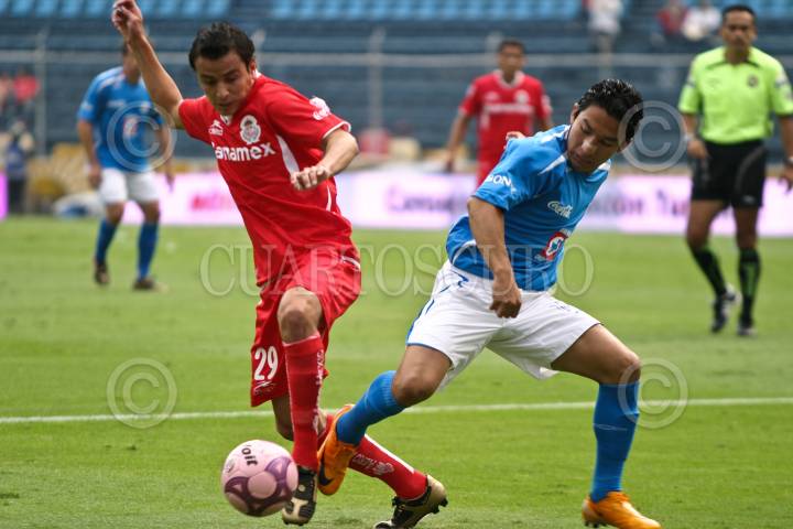 MÉXICO, D.F., 04OCTUBRE2008.- Pablo Daniel Zeballos de los cemeteros del Cruz Azul corre con el balón urante el partido enfrentado esta tarde con los diablos del Toluca en partido de la jornada 11 quedando empatado a 1 gol. FOTO: RODOLFO ANGULO/CUARTOSCURO.COM