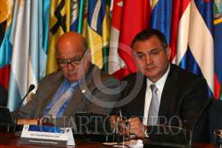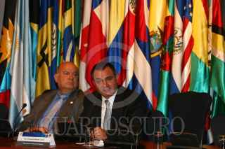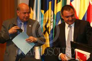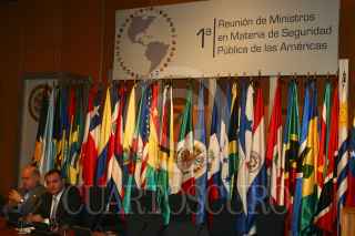 MÉXICO, D.F., 08OCTUBRE2008.- José Miguel Insulza, Secretario General de la OEA junto con el Secretario de Seguridad Publica, Genaro García Luna en conferencia de prensa para dar detalles de la Primera Reunión de Ministros de Seguridad Pública de las Américas que concluyó el día de hoy. FOTO: SAÚL LÓPEZ/CUARTOSCURO.COM