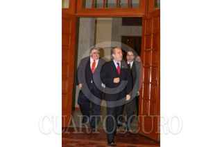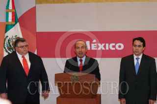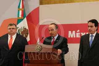 MÉXICO, D.F. 08OCTUBRE2008.- El presidente, Felipe Calderón Hinojosa, acompañado del Secretario de Hacienda, Agustín Cartens Cartens y del Titular de la Secretaria de Economía, Gerardo Ruiz Mateos, dio a conocer el plan económico para el rescate de la economía nacional, esto por la crisis que se vive a nivel mundial. FOTO: GUILLERMO PEREA/CUARTOSCURO.COM