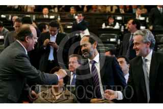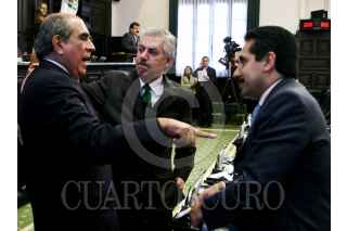 MÉXICO D.F., 09OCTUBRE2008.- El senador del PRD Graco Ramirez conversa con los senadores del PAN Gustavo Madero y Santiago Creel durante la sesión ordinaria en el Senado de la República. FOTO: RODOLFO ANGULO/CUARTOSCURO.COM