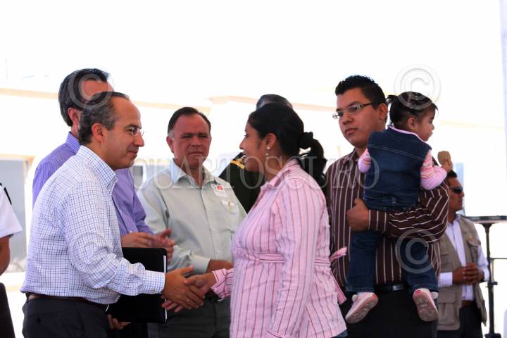 CIENEGA DE FLORES, NUEVO LEON,09OCTUBRE2008.- El presidente Felipe Calderon Hinojosa, durante el evento mas vivienda para VIVIR MEJOR, que tuvo lugar en el fraccionamiento Real del sol. FOTO ALFREDO GUERRERO/CUARTOSCURO.COM