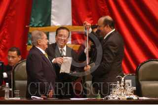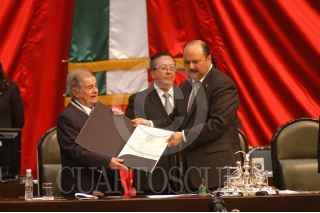 MÉXICO D.F., 09OCTUBRE2008.- En ceremonia solemne se realizo la entrega de la Medalla al Merito Cívico Eduardo Nery a Miguel León Portilla en la Cámara de Diputados . FOTO: GUILLERMO PEREA/CUARTOSCURO.COM