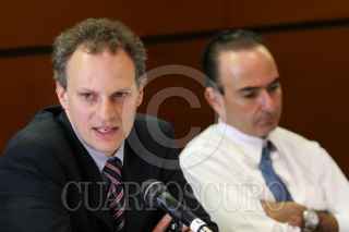 MÉXICO D.F., 09OCTUBRE2008.- Alejandro Werner, subsecretario de Hacienda, acudió esta tarde a la Cámara de Diputados, donde se se reunió con la Comisión de Hacienda de esta Cámara. En la imagen es acompañado por el diputado Jorge Estefan Chidiac presidente de la Comisión de Hacienda. FOTO: GUILLERMO PEREA/CUARTOSCURO.COM