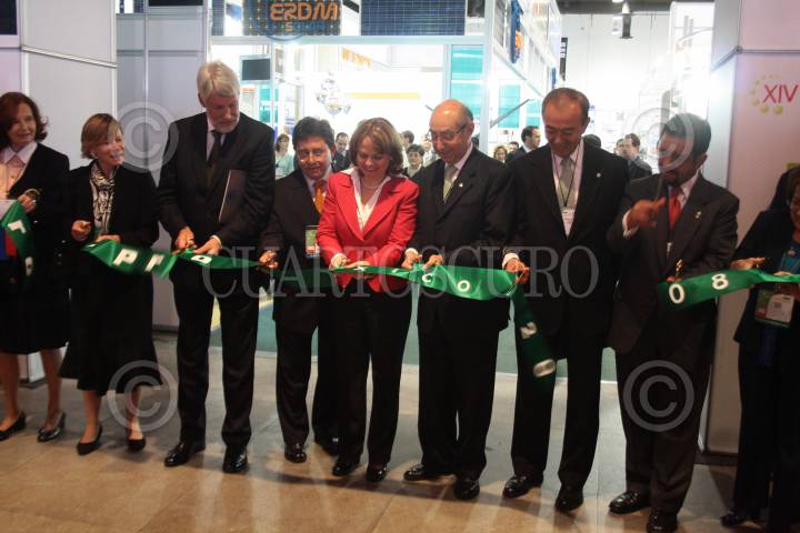 MÉXICO, D.F., 14OCTUBRE2008.- Mártha Delgado Secretaria de Medio Ambiente encabezo las ceremonias de inauguración del inicio de las actividades del XVI Congreso Internacional Ambiental efectuado en el edificio World Trade Center, donde presentaran conferencias sobre alternativas de energías renovables y a su vez estará instalada la Expo Enviro-Pro México 2008 que cuenta con expositores de diversas nacionalidades y con distintos tipos de tecnologías y artefactos para el desarrollo de energías renovables ecológicas. FOTO: COSME RADA/CUARTOSCURO.COM
