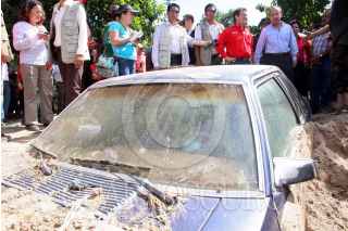 ALAMOS SONORA, 14OCTUBRE2008.- Felipe Calderón Hinojosa, Presidente de México, acompañado de Eduardo Bours, gobernador del estado, realizaron un recorrido por las zonas afectadas por el huracán Norbet. FOTO: ALFREDO GUERRERO/CUARTOSCURO.COM