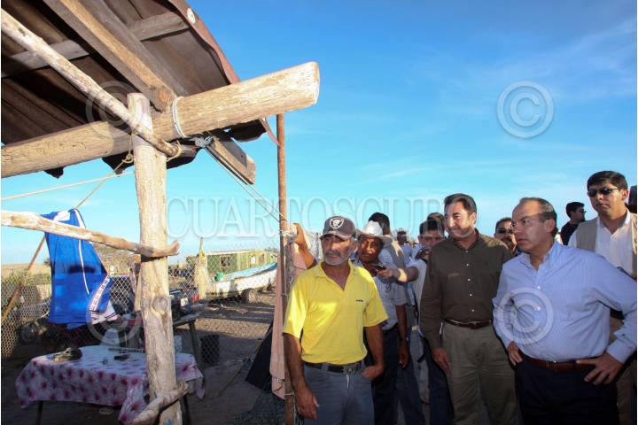 GUAYMAS, SONORA, 14OCTUBRE2008.- El presidente de México; Felipe Calderón Hinojosa, durante la visita que hizo a este estado, con motivo de las ultimas lluvias que han dejado severas afectaciones. FOTO: ALFREDO GUERRERO/CUARTOSCURO.COM