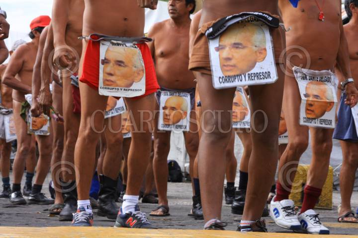 SAN RAYMUNDO JALPAN, OAXACA 17OCTUBRE2008.- Ante el anuncio de que este medio día le tomarían protesta constitucional al nuevo administrador municipal de San Raymundo Jalpan; Dámaso Nicolás, un grupo aproximado de 10 personas identificadas con el depuesto presidente municipal; Adán López Mejía, se manifestaron en la entrada del palacio municipal de la población en rechazo al nuevo nombramiento donde la policía resguarda el orden y pequeños grupos contrarios se insultaron FOTO: MAX NÚÑEZ/CUARTOSCURO.COM