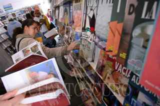 MÉXICO, D.F., 18OCTUBRE2008.- Cientos de defeños buscan un libro entre la gran gama de temas que ofrece la Feria del Libro de la Ciudad de México que se encuentra instalada en la plancha del Zócalo y que el día de mañana será clausurada. FOTO: MOISÉS PABLO/CUARTOSCURO.COM
