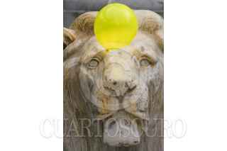 MÉXICO, D.F., 18OCTUBRE2008.- Uno de los leones de mármol que resguardan el Hemiciclo a Juárez contrasta con la ligereza de un globo en una de las postales que nos regala esta capital en donde a diario se viven cientos de problemas. FOTO: MOISÉS PABLO/CUARTOSCURO.COM