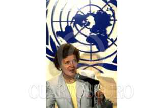 Mary Robinson, alta comisionada de las Naciones Unidas, se encuentra de visita en nuestro país, y esta tarde ofreció una conferencia de prensa ante medios de comunicación nacionales e internacionales. FOTO: Pedro Mera/CUARTOSCURO.COM