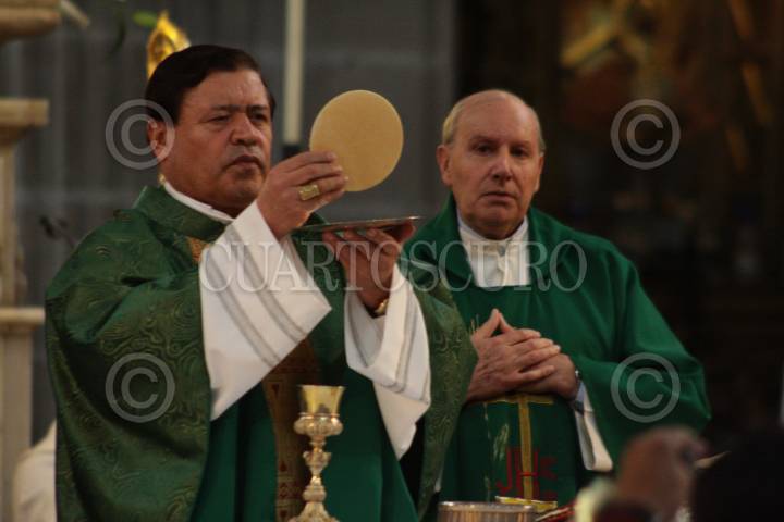 CANCÚN, QUINTANA ROO, 19OCTUBRE2008.- En la catedral se oficio una misa especial al celebrarse el "Domund" o Domingo Misionero, en donde el Obispo Pedro Pablo Elizondo bendijo todas las colectas recibidas para ayudar a los más necesitados. FOTO: MARCO POLO GUZMÁN HERNÁNDEZ/CUARTOSCURO.COM