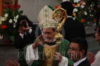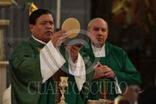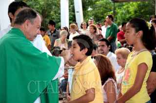 CANCÚN, QUINTANA ROO, 19OCTUBRE2008.- En la catedral se oficio una misa especial al celebrarse el "Domund" o Domingo Misionero, en donde el Obispo Pedro Pablo Elizondo bendijo todas las colectas recibidas para ayudar a los más necesitados. FOTO: MARCO POLO GUZMÁN HERNÁNDEZ/CUARTOSCURO.COM