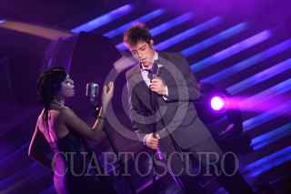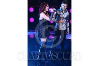 MÉXICO, D.F., 19OCTUBRE2008.- Se realizo una emision mas del reality show de los sueños sangre por sangre, en la imágen el cantante Pee Wee canta con Dulce Maria durante su participación en la emisión. FOTO: SÁSHENKA GUTIÉRREZ/CUARTOSCURO.COM