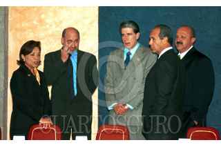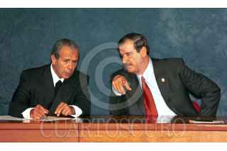 Pedro Cerisola, secretario de Comunicaciones y Transportes y el presidente Vicente Fox, durante la Declaratoria de Conectividad del Sistema Nacional e-México en la residencia oficial de los Pinos. FOTO: Oswaldo Ramírez/CUARTOSCURO.COM