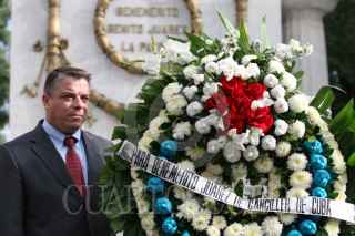 MÉXICO, D.F., 20OCTUBRE2008.- Felipe Pérez Roque, Canciller de la República de Cuba, en visita oficial a nuestro país, realizó un guardia de honor y coloco una ofrenda floral en el Hemiciclo al Benemérito de las Américas Benito Juárez. FOTO: GUILLERMO PEREA/CUARTOSCURO.COM