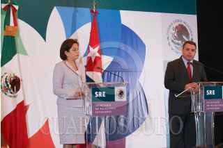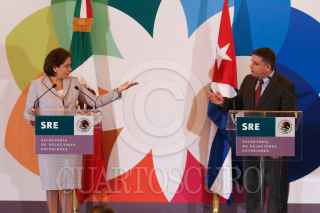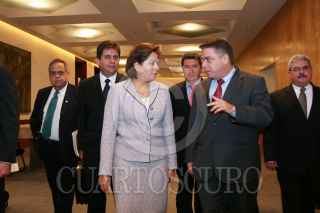 MÉXICO, D.F., 20OCTUBRE2008.- Felipe Pérez Roque, Canciller de la República de Cuba, en visita oficial a nuestro país, se reunió con Patricia Espinoza titular de la Secretaría de Relaciones Exteriores donde firmaron un acuerdo migratorio y posteriormente ofrecieron una conferencia de prensa, esto en la instalaciones de la secretaria. FOTO: GUILLERMO PEREA/CUARTOSCURO.COM