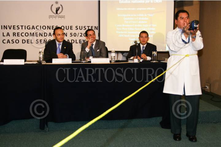 MÉXICO, D.F., 20OCTUBRE2008.- La Comisión Nacional de Derechos Humanos presentó un informe sobre el caso del periodista estadounidense Bradley Roland Will y reiteró que la Procuraduría General de la República cometió conductas irregulares y omisiones durante la investigación acerca de su muerte durante el conflicto magisterial en Oaxaca hace dos años. En la imagen, el doctor Epifanio Salazar Araiza explica los estudios realizados al caso. FOTO: ISAAC ESQUIVEL/CUARTOSCURO.COM