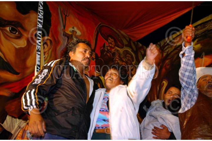 El subprocurador de Texcoco, José Andrés Mendiola (de camisa blanca), luego de ser liberado por los ejidatarios de San Salvador Atenco. Fue retenido como rehén desde el pasado jueves, con el fin de ser "canjeado" por ejidatarios presos. FOTO: Juan Pablo Zamora / CUARTOSCURO.COM