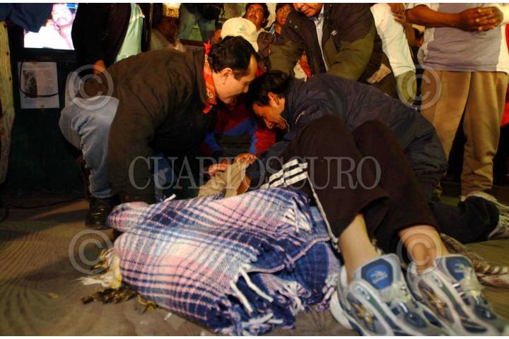 El subprocurador de Texcoco, José Andrés Mendiola (de camisa blanca), luego de ser liberado por los ejidatarios de San Salvador Atenco. Fue retenido como rehén desde el pasado jueves, con el fin de ser "canjeado" por ejidatarios presos. FOTO: Juan Pablo Zamora / CUARTOSCURO.COM