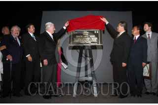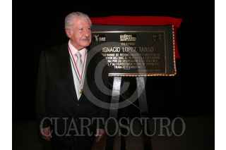 MÉXICO, D.F., 23OCTUBRE2008.- El actor Ignacio López Tarso, encabezó la develación de la placa en la que se constata que el nuevo nombre del teatro del Centro Cultural San Ángel es el nombre del actor, esto como parte de un homenaje en vida que la delegación Alvaro Obregón le rindió a su destacada trayectoria profesional. En el evento estuvo Leonel Luna Estrada, jefe delegacional y una veintena de compañeros de actuación además de familiares y amigos. FOTO: CUARTOSCURO.COM