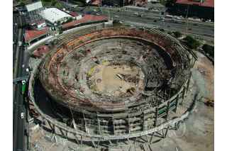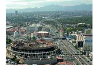 NAUCALPAN, ESTADO DE MÉXICO, 23OCTUBRE2008.- Vista aerea del Toreo de Cuatro Caminos en su desmantelamiento. FOTO: MARIO NULO/CUARTOSCURO.COM