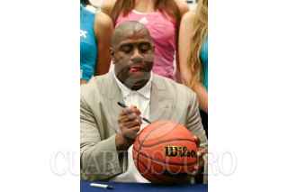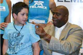MÉXICO D.F., 24OCTUBRE2008.- El ex basquetbolista estadounidense de la NBA, Earving "Magic" Johnson realizo una firma de autografos en el área de exposiciones dentro del segundo día de actividades del 1er Congreso Mundial del Deporte 2008 que se realizará hasta este próximo sabado en el Centro Banamex. FOTO: RODOLFO ANGULO/CUARTOSCURO.COM