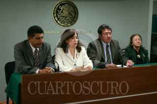 MÉXICO, D.F., 24OCTUBRE2008.- Los senadores perredista Salomón Jara, Yeidckol Polenvsky, Ricardo Monreal y Rosario Ybarra de Piedra, del Partido del Trabajo, ofrecieron una conferencia de prensa en la cual se pronunciaron en contra del operativo de la Policía Federal Preventiva que se realizó ayer en la sede alterna del senado conocida como Torre del Caballito, ya que según destacaron esto se trató de una flagrante violación a su fuero federal. FOTO: MOISÉS PABLO/CUARTOSCURO.COM