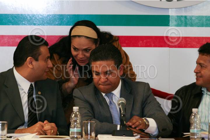 MÉXICO D.F., 24OCTUBRE2008.-Los diputados Laida Sanzores y Alejandro Sánchez, durante la conferencia donde pidieron la destitución del Secretario de Seguridad Pública Federal, esto por las agresiones recibidas el día de ayer en la instalaciones del Senado de la República. FOTO: GUILLERMO PEREA/CUARTOSCURO.COM