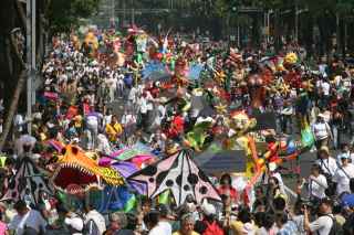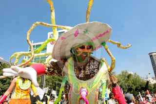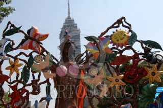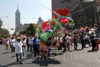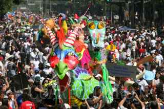 MÉXICO, D.F., 25OCTUBRE2008.- Más de ochenta alebrijes monumentales participaron en una desfile que salió del Centro Histórico a la Diana Cazadora ubica sobre Paseo de la Reforma, las figuras artístico-fantástica surgidas de la inspiración y talento de artesanos mexicanos fueron disfrutadas por el público que asistió. Los "Alebrijes Monumentales" permanecerán para su exhibición en las aceras principales de Reforma. FOTO: MOISÉS PABLO/CUARTOSCURO.COM